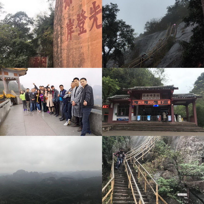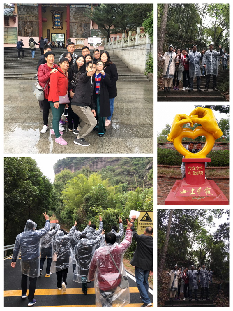 再來到著名丹霞山。古語有言“桂林山水甲全國(guó),不及廣東一丹霞,色如渥丹、燦如明霞?!鄙仃P(guān)丹霞山,一直是公司小伙伴們期待已久的游覽地點(diǎn)。其中,長(zhǎng)老峰是丹霞山的主峰之一,雖然天空下著朦朧細(xì)雨,但絲毫不影響同事們的熱情,大家冒著風(fēng)雨登上長(zhǎng)老峰,感受了一番“一覽眾山小”,堅(jiān)持就是勝利,這大概就是不畏艱苦爬上頂峰的優(yōu)越感吧。
