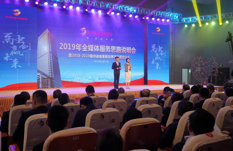 一元復(fù)始,萬(wàn)象更新。2019年1月17日下午3點(diǎn),惠州報(bào)業(yè)傳媒集團(tuán)2019年全媒體服務(wù)思路說(shuō)明會(huì)暨“2018-2019惠州讀者喜愛品牌評(píng)選”頒獎(jiǎng)活動(dòng)隆重舉行。來(lái)自惠州市機(jī)關(guān)團(tuán)隊(duì)、教育、金融、醫(yī)療、房地產(chǎn)、汽車、商業(yè)、家居、旅游等各行各業(yè)的領(lǐng)頭羊和精英代表齊聚惠州報(bào)業(yè)傳媒集團(tuán)全媒體基地,共同見證這一全市矚目、大咖云集的盛事。