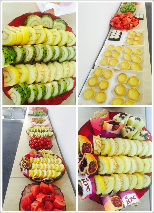 下午茶不單能趕走下午的瞌睡蟲,還能及時補(bǔ)充能量,恢復(fù)體力,華威公司因此很重視下午茶文化。除了日常在辦公室準(zhǔn)備好各種小零食、茶葉、咖啡以供大家及時補(bǔ)充能量,每周三、周五,人資行政部還會在下午3-4點(diǎn)間準(zhǔn)備豐盛的下午茶。美妙的下午茶時光,員工們聚在一起,有說有笑,品嘗著各種新奇美味的小點(diǎn)心,其樂融融。