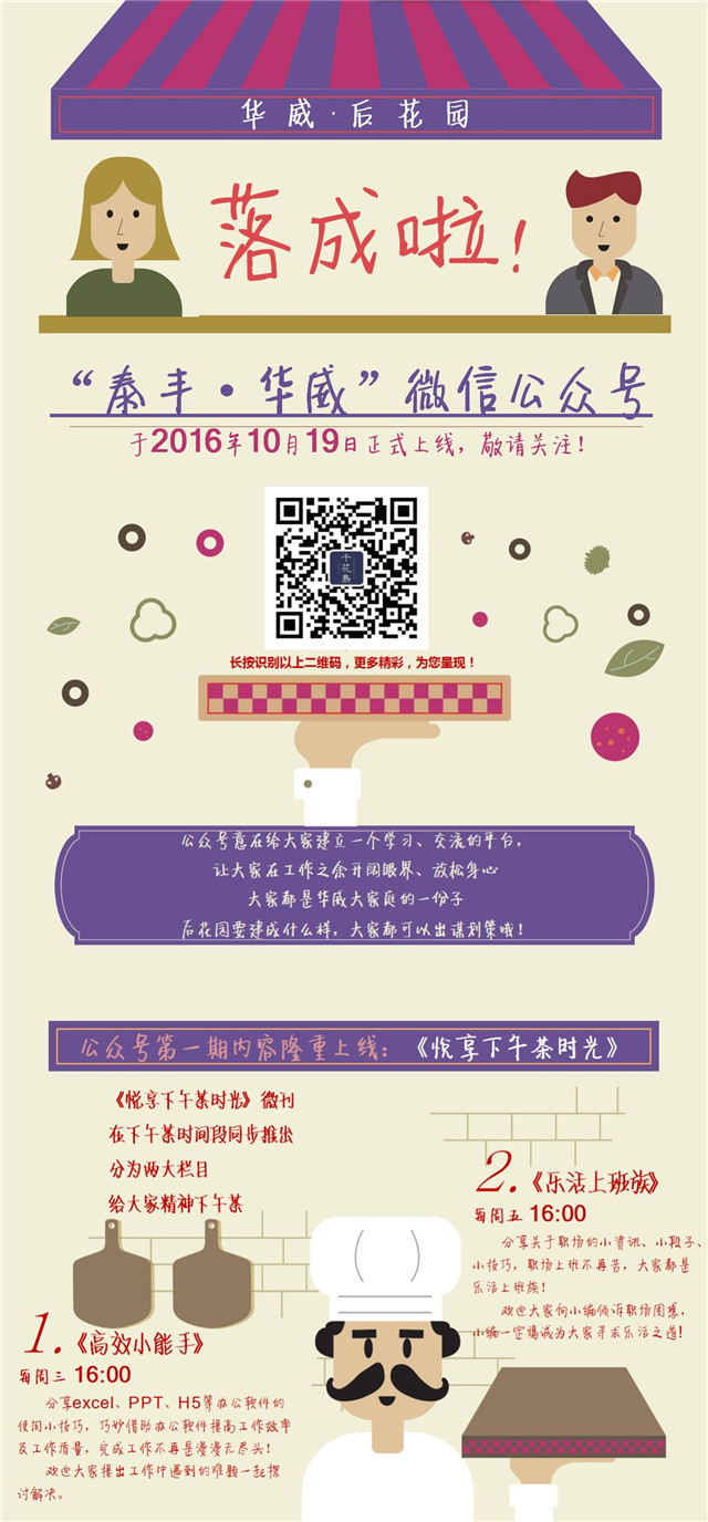自2016年10月起,伴著下午茶的供應(yīng),人資行政部還推出了給大腦補(bǔ)充能量的“下午茶”——《悅享下午茶時光》微刊,每周三、周五下午4點(diǎn),通過內(nèi)部微信公眾號跟大家分享各種搜羅而來的辦公軟件操作技巧、職場文章,幾分鐘時間,給大腦迅速充電。